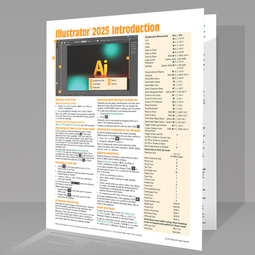 This 4-page laminated guide for Adobe Illustrator 2025 provides step-by-step instructions and shortcuts for drawing tools, powerful text creation, ...