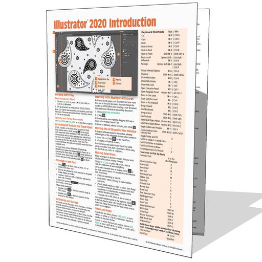 This 4-page laminated guide for Adobe Illustrator 2020 shows step-by-step instructions and shortcuts for drawing tools, powerful text creation, mo...