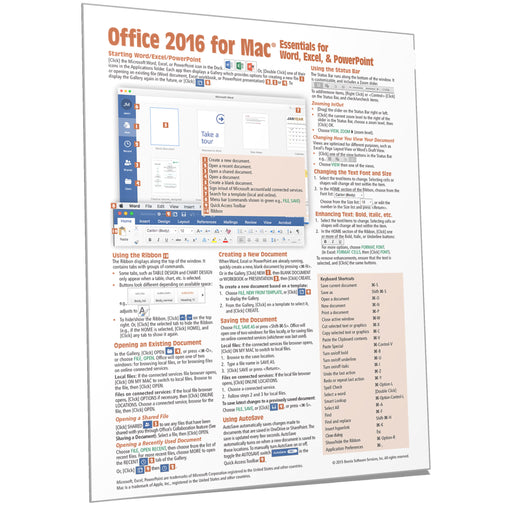 Are you using Microsoft Office 2016 for Mac products and need a handout that shows you the most important things you need to know? A cheat sheet that shows the most efficient ways to do things, and the best shortcuts? Our laminated quick reference guides are ideal for end users and trainers alike, whether as a handout for students, or simply a useful desk reference.