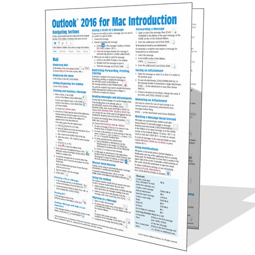 This 4-page laminated Microsoft Office Outlook 2016 for Mac quick reference guide showing step-by-step instructions and shortcuts for how to use ma...