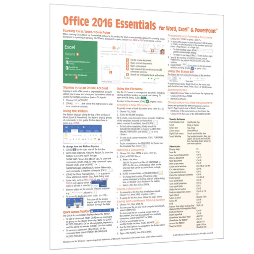 Sturdy 8.5 x 11 laminated reference guides full of tips, shortcuts and user instructions in a clear, manageable format. Ideal for end-users, students or trainers. For other Office versions, click Office 365, 2019, 2013, 2010, 2007. Click here for Office 2016 for Mac.