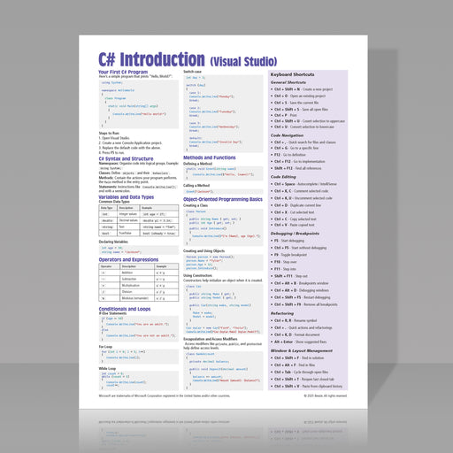 Jumpstart your C# programming journey with this concise and easy-to-follow 2-page quick reference guide! Whether you're a beginner learning C# or a...